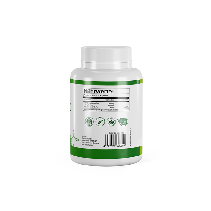 <ul> <li class=“ai-optimize-21″ style=“list-style-type: none“> <ul> <li class=“ai-optimize-20″> <table> <tbody> <tr> <td><strong>Inhaltsstoff</strong></td> <td><strong>pro Portion</strong></td> <td><strong>% NRV*</strong></td> </tr> <tr> <td>5-Hydroxytryptophan</td> <td>65 mg</td> <td>–</td> </tr> <tr> <td>L-Tryptophan</td> <td>100 mg</td> <td>–</td> </tr> <tr> <td>Vitamin B6 (P-5-P)</td> <td>1,4 mg</td> <td>100 %</td> </tr> </tbody> </table> <p class=“ai-optimize-22″>*NRV = Nährstoffbezugswerte gemäß VO (EU) Nr. 1169/2011</p> </li> <li class=“ai-optimize-18″></li> </ul> </li> </ul>
